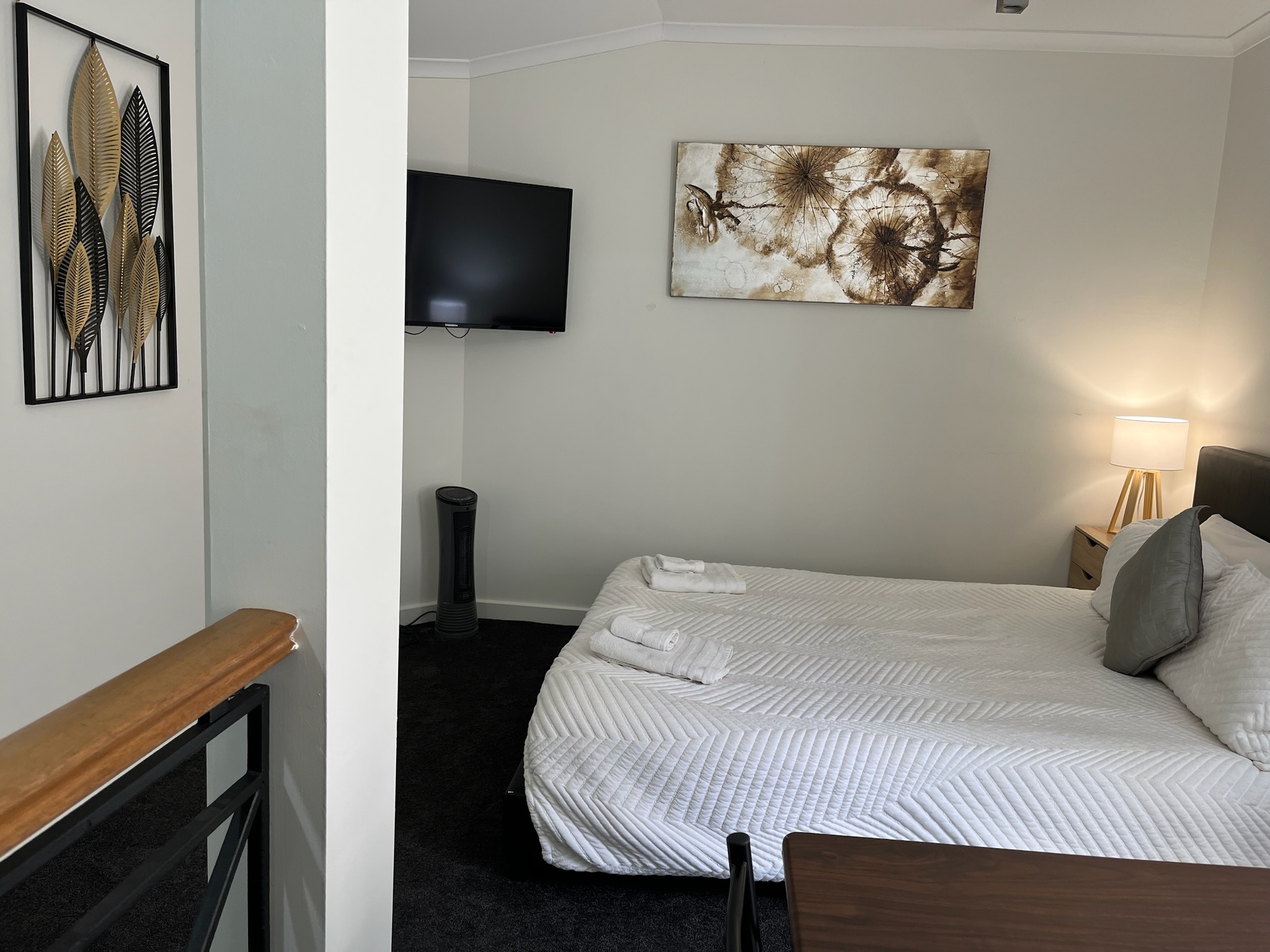 Ground floor small Deluxe modern Apartment with Queen Bed, fully equipped ensuite, free Wi-Fi, 43” smart TV, Personal Bar, Coffee Pod Machine, tea & coffee making facilities complimentary ground coffee, port & sherry.