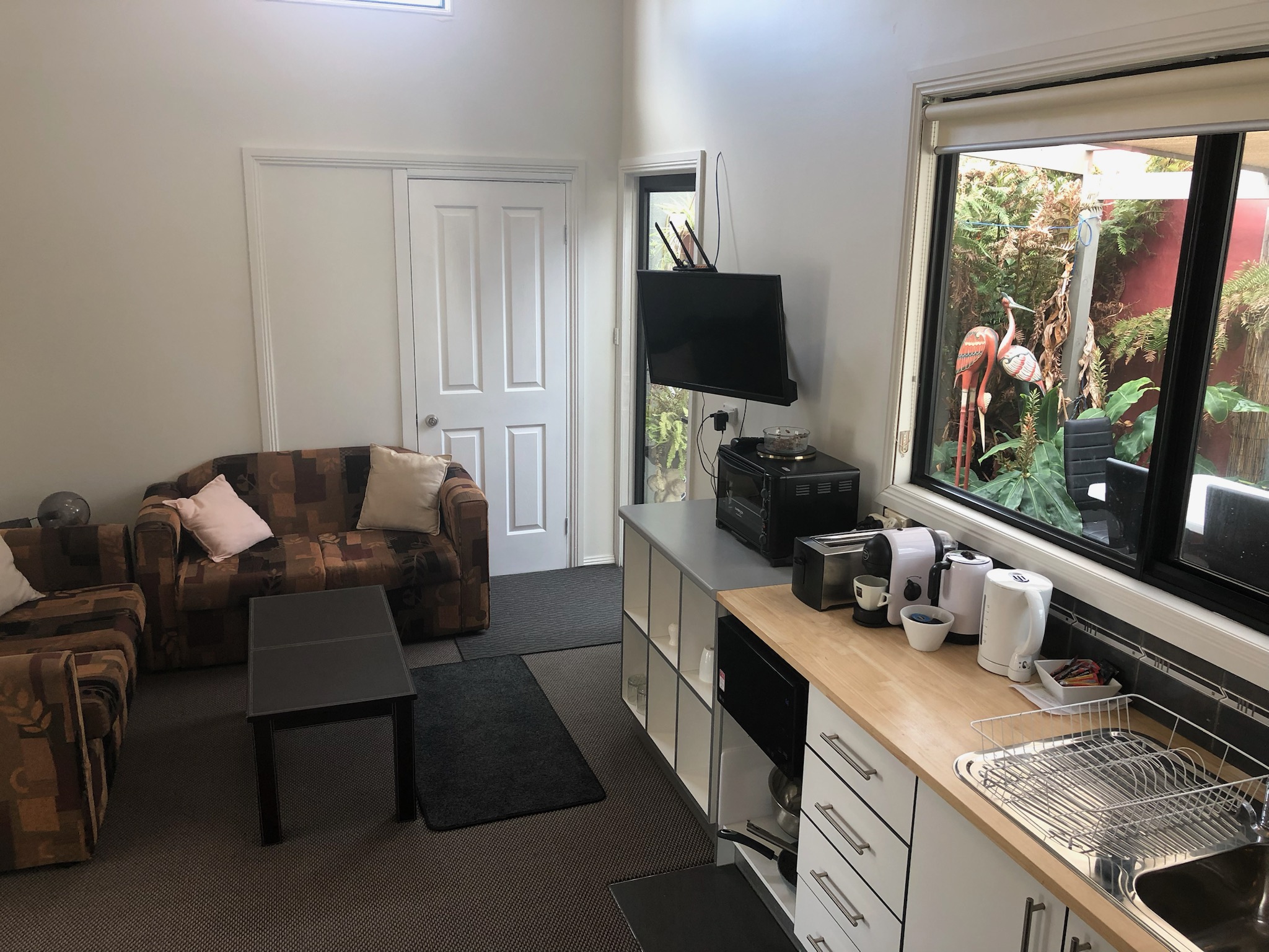 A sleek and modern two bedroom garden apartment, with kitchen facilities, tucked quietly away behind the stunning heritage listed Madsen Boutique Hotel.
