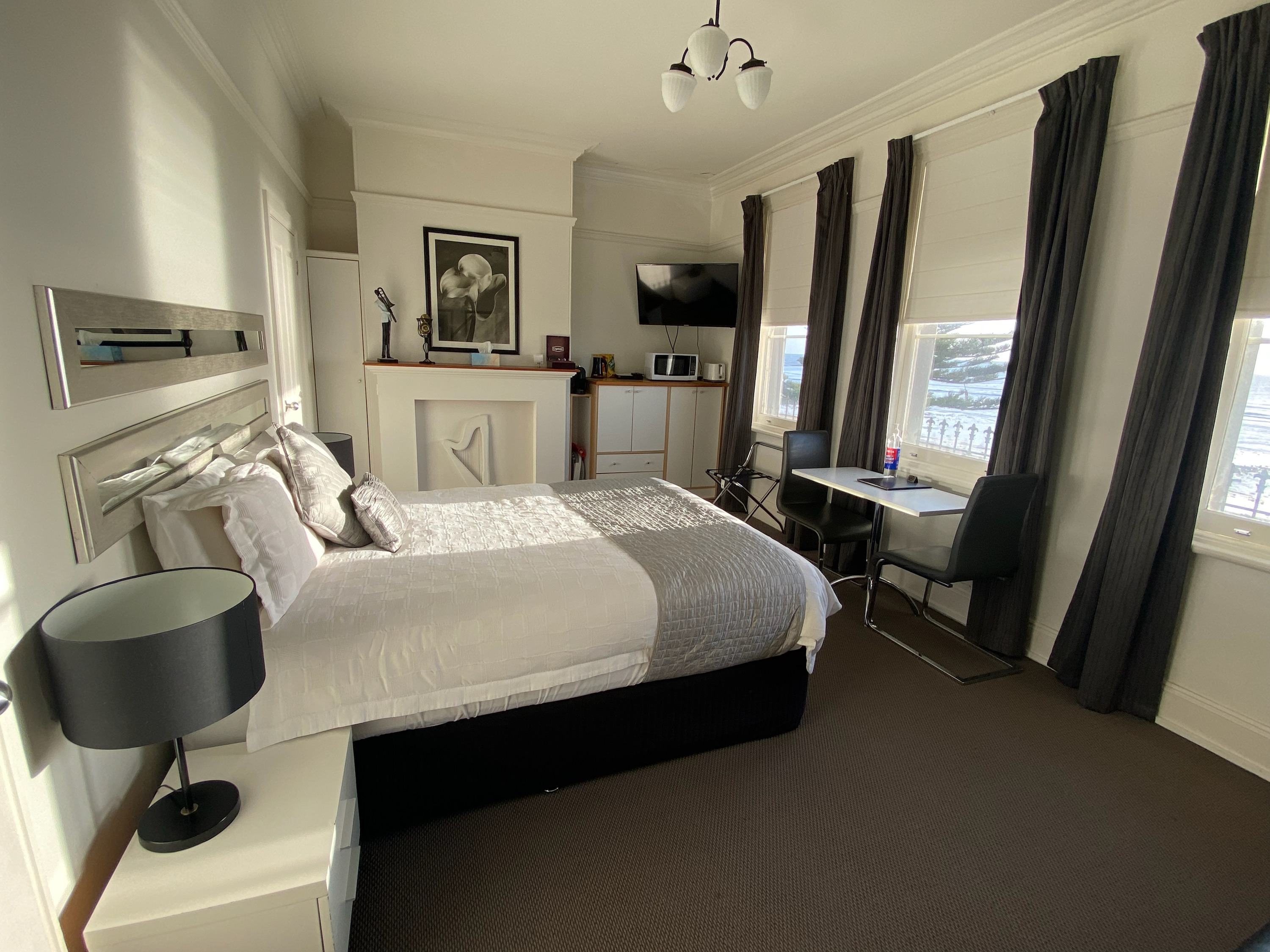 Stunning waterfront views over Bass Strait from this first floor executive room. Queen Bed, fully equipped ensuite, sofa Bed, 43” smart TV, DVD player, Free DVDs, Personal Bar, Nespresso Coffee Pod Machine, Tea & Coffee making facilities. Free Wi-Fi. Complimentary ground coffee, port & sherry. Rates are for 2 people sharing the same bed.